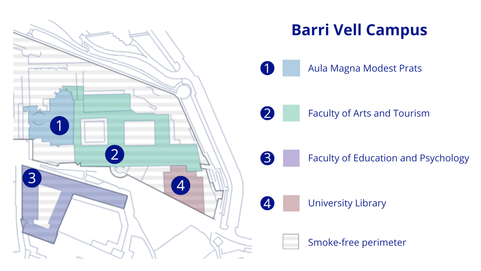 The Campus Barri Vell brings together several of the University of Girona’s key faculties and academic spaces, particularly those dedicated to the humanities, education, and social sciences. Its buildings integrate modern facilities within historic structures, creating an inspiring setting for scholarly exchange and interdisciplinary collaboration.