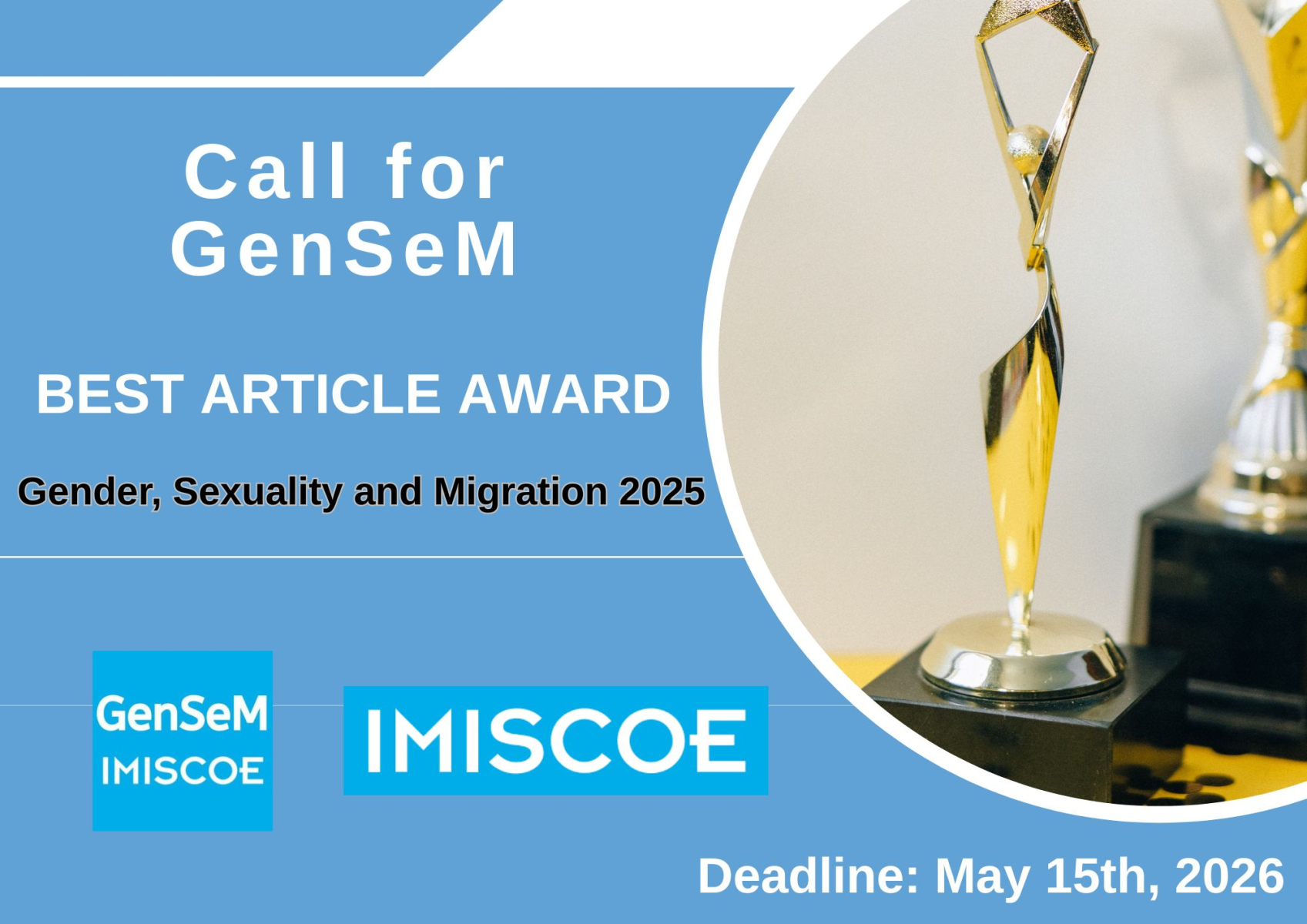 Call for GenSeM Best Article Award on Gender, Sexuality and Migration 2025 IMISCOE’s Gender and Sexuality in Migration Research Standing Committee invites nominations for their annual Best Article Award in the area of Gender, Sexuality and Migration....