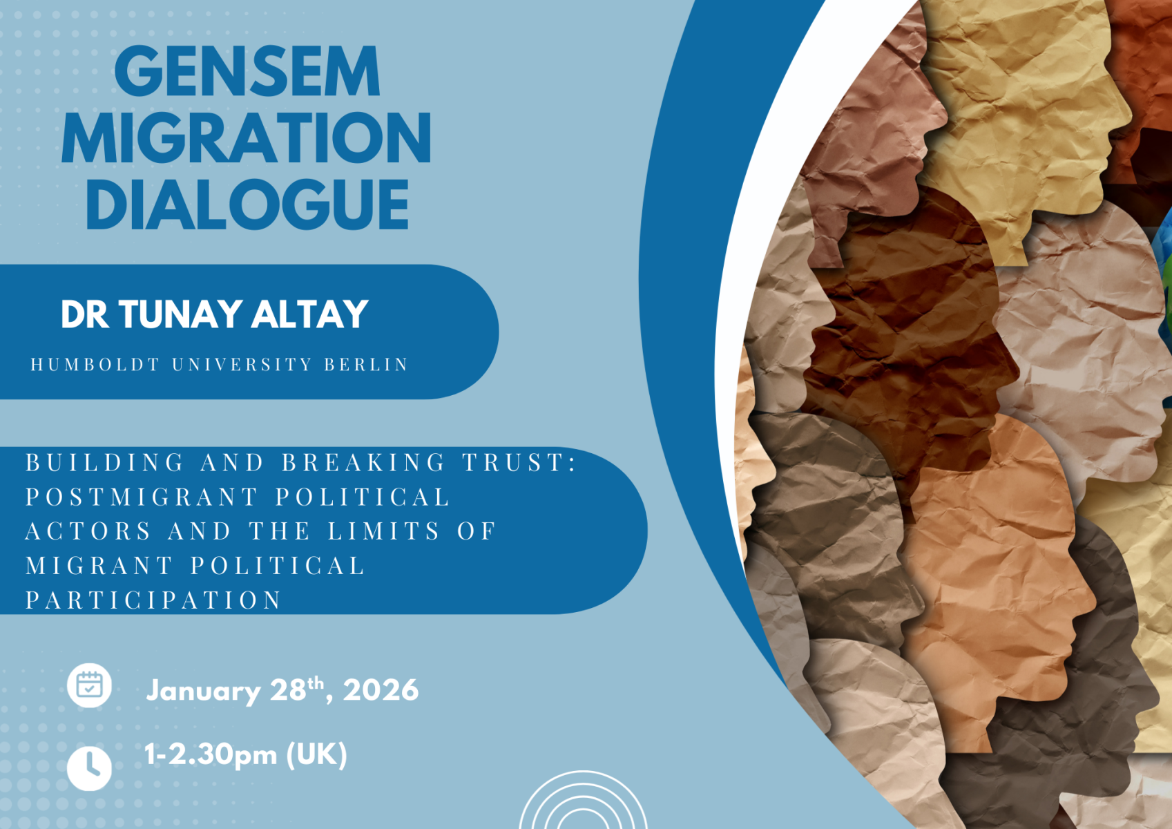 We are pleased to announce our forthcoming hybrid Migration Dialogue, organised in collaboration with the SCMR at Sussex on January 28th, 1-2.30 (UK time). We will welcome Dr Tunay Altay, a long-standing GenSeM member, who will present his work on...