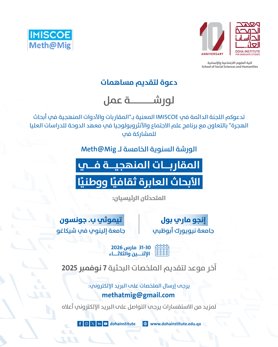 The IMISCOE Standing Committee “Methodological Approaches and Tools in Migration Research” (Meth@Mig) in collaboration with the Sociology and Anthropology Program at the Doha Institute for Graduate Studies invites researchers of any methodological orientation to participate in the