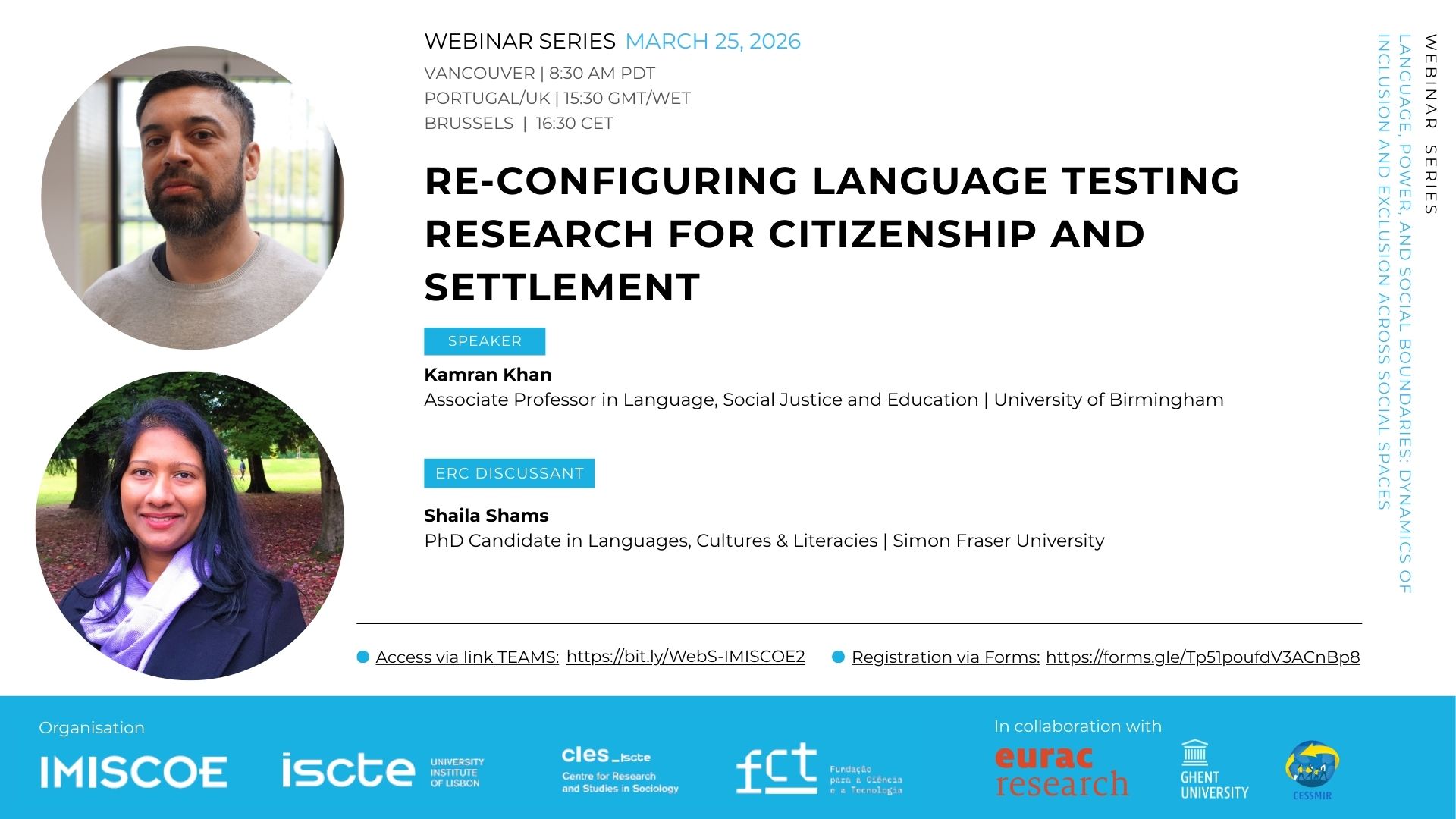 IMISCOE SC EduSocial & CIES-Iscte, in collaboration with Eurac Research & CESSMIR (Ghent University), are pleased to invite you to the second session of the Webinar Series “Language, Power, and Social Boundaries: Dynamics of Inclusion and Exclusion Across Social Spaces.”