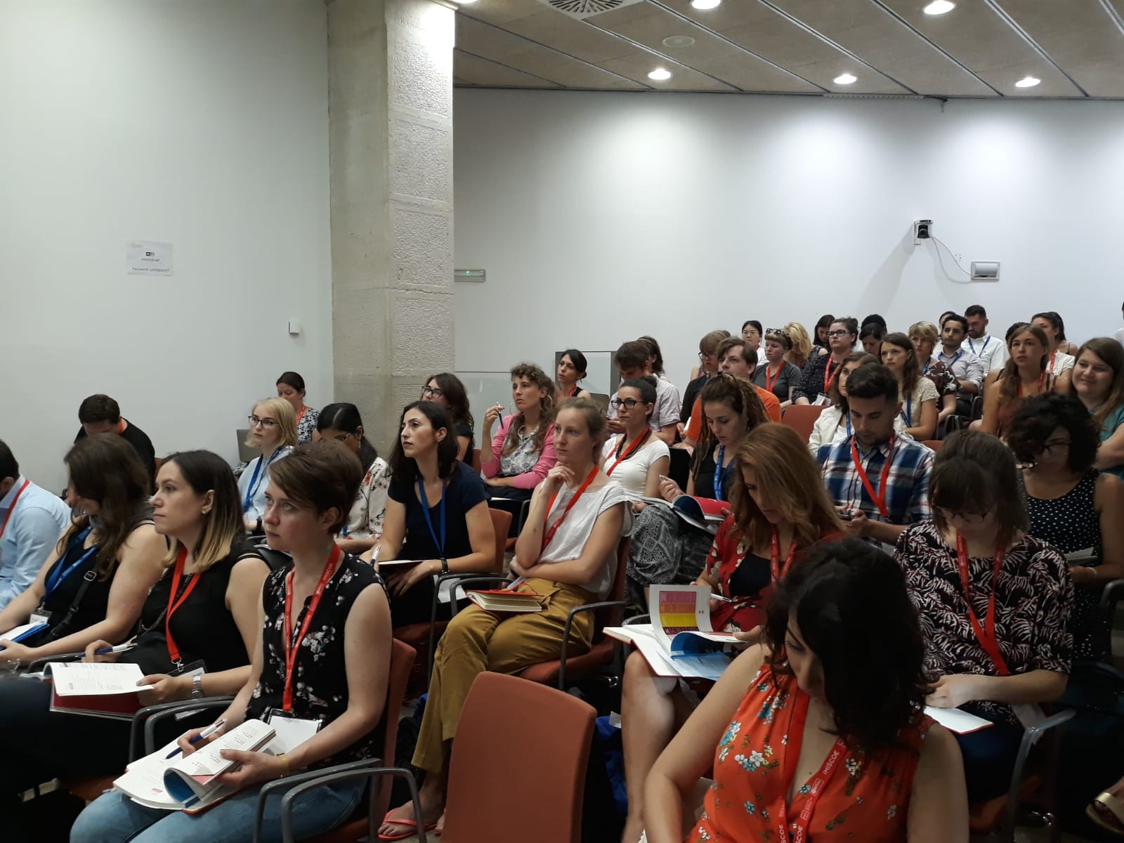 Although I leave my hotel rather timely, I manage to get hopelessly lost in awakening and warm Barcelona and I even end up taking a taxi to avoid being too late, which would result in missing my own talk (so embarrassing). Sweaty and relieved I arrive a few minutes before the actual assembly starts and I have time to quickly stuff some tasty little sandwiches into my mouth. Also, a dose of fresh café con leche is provided and I almost forget I’ve had such a stressful morning.